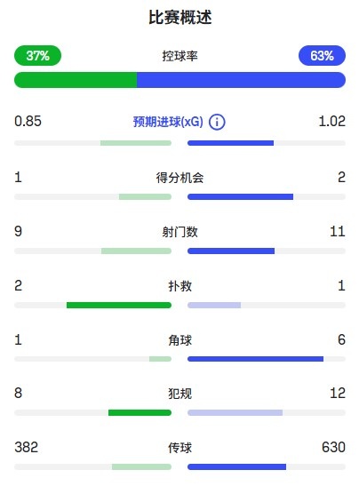 比賽在夜里開(kāi)打,很多朋友可能沒(méi)時(shí)間看直播,所以我們不妨把數(shù)據(jù)對(duì)比作為第一個(gè)研究點(diǎn)。國(guó)米在控球率、傳球數(shù)、傳中數(shù)等基礎(chǔ)數(shù)據(jù)上比米蘭多很多,然而實(shí)際創(chuàng)造出的機(jī)會(huì)兩隊(duì)卻相差無(wú)幾。雖然控球率是63%-37%,但國(guó)米比米蘭的射門(mén)數(shù)僅僅多了2次,且射正數(shù)居然同為2次。這很能說(shuō)明問(wèn)題。