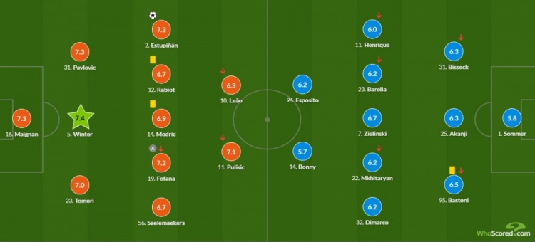 (米蘭三中場(chǎng)思路相對(duì)活躍,有莫德里奇兜底、拉比奧特福法納來(lái)回奔走就更有價(jià)值;相反,國(guó)米有些框定)