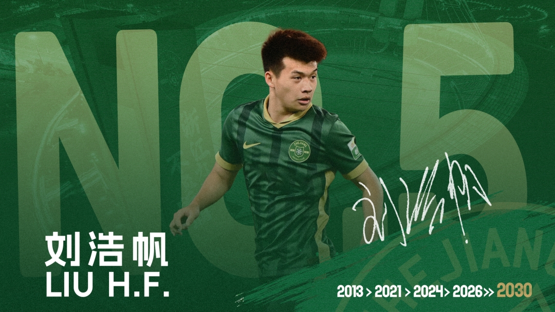 近日,浙江職業(yè)足球俱樂(lè)部與球員劉浩帆完成續(xù)約,新合同延續(xù)至2030年。