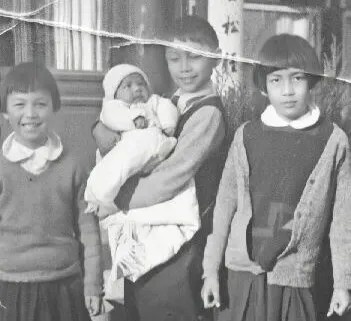 大哥周乃文抱著不滿1歲的周懿嫻,右一為二姐周懿貞,左一為三姐周懿芬。攝于1934年,朗潤園10號。?