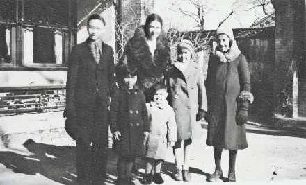 許淑文(最高者)和子女們(子女左起周乃文、周懿嫻、周乃揚(yáng)、周懿芬、周懿貞)。攝于1938年,朗潤園10號。?