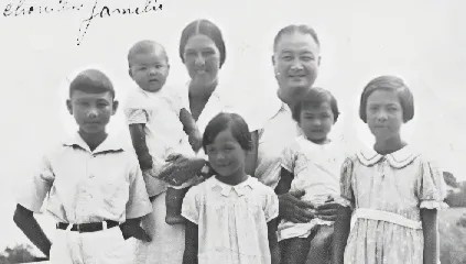 全家福,攝于1939年。左起:周懿芬、周懿嫻、許淑文、周乃文、周學(xué)章、周乃揚(yáng)、周懿貞。?