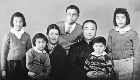 全家福,攝于1944年,大佛寺居所。后排左起:周乃文、周懿貞、周懿芬;前排左起:周乃揚(yáng)、許淑文、周學(xué)章、周懿嫻。?