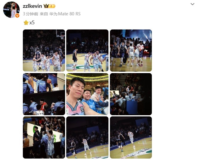 張鎮(zhèn)麟曬出自己在本次全明星賽場內(nèi)外的一組照片,配文寫道:“?x5”