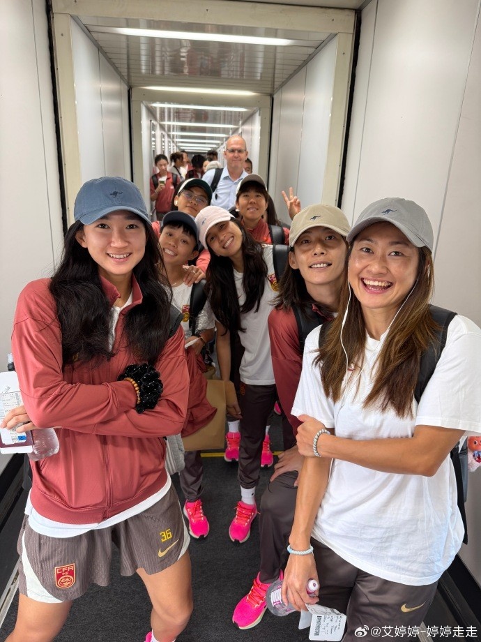 今天,中國女足出發(fā)前往1/4決賽比賽地珀斯,記者艾婷婷曬照,女足球員們面帶笑容乘機(jī)前往珀斯。