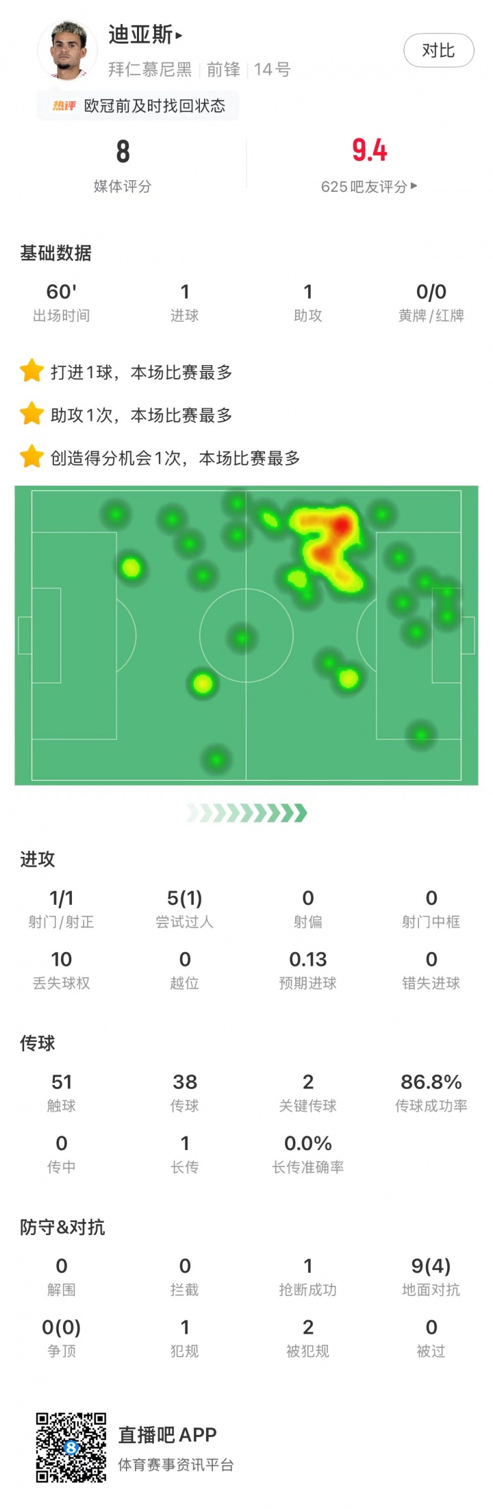 第25輪評選結(jié)果出爐,迪亞斯貢獻(xiàn)1球1助幫助拜仁4-1大勝門興,本賽季聯(lián)賽出場24次已貢獻(xiàn)14球11助,成功當(dāng)選【直播吧X小紅書德甲第25輪最佳球員】!