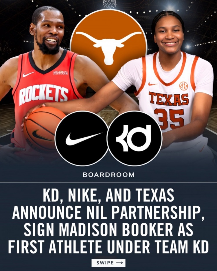 在與耐克的合作下,德克薩斯大學(xué)女籃前鋒麥迪遜·布克將成為首位Team KD成員,她將獲得個(gè)人專屬的KD PE球鞋、服裝等資源支持的運(yùn)動(dòng)員。