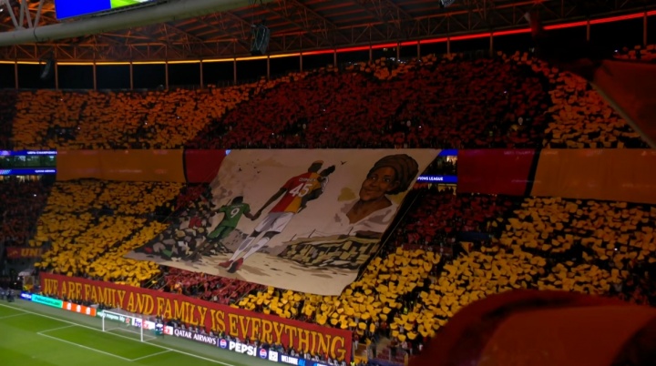 比賽開始前,加拉塔薩雷主場球迷打出TIFO致敬奧斯梅恩和在他幼年就不幸去世的母親,文字內(nèi)容:我們是一家人,而家人就是一切。