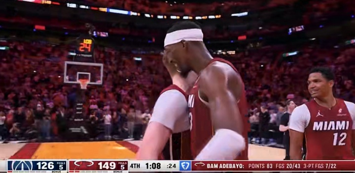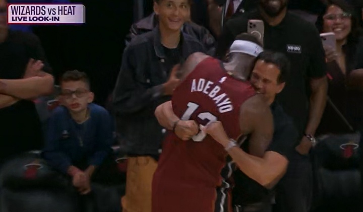 下班了~阿德巴約83分超越科比81分之后下場 與斯波擁抱慶祝